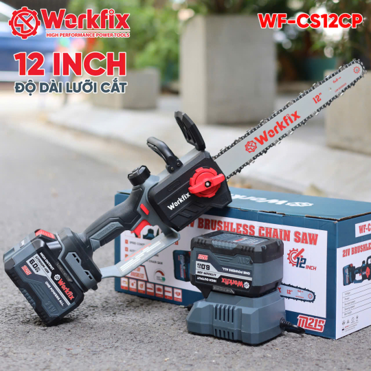 - 1 Thân máy + Hộp đựng + 2 pin 15 cell abs - 4.5Ah + 1 sạc 2A - Điện áp: 21V - Lam xích 12" = 260MM - Tốc độ cưa 6m/s - Tốc độ không tải: 3600rpm - Động cơ không chổi than, có bình tra nhớt tự động - Bảo hành 6 tháng